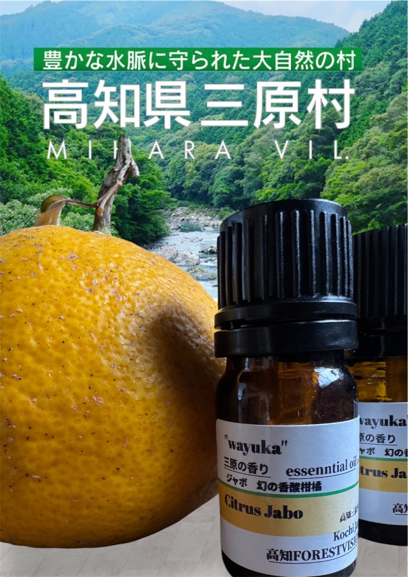 三原村の清流と豊かな土地で育まれたジャボの果皮から、伝統的な水蒸気蒸留法によって丁寧に抽出された一品です。