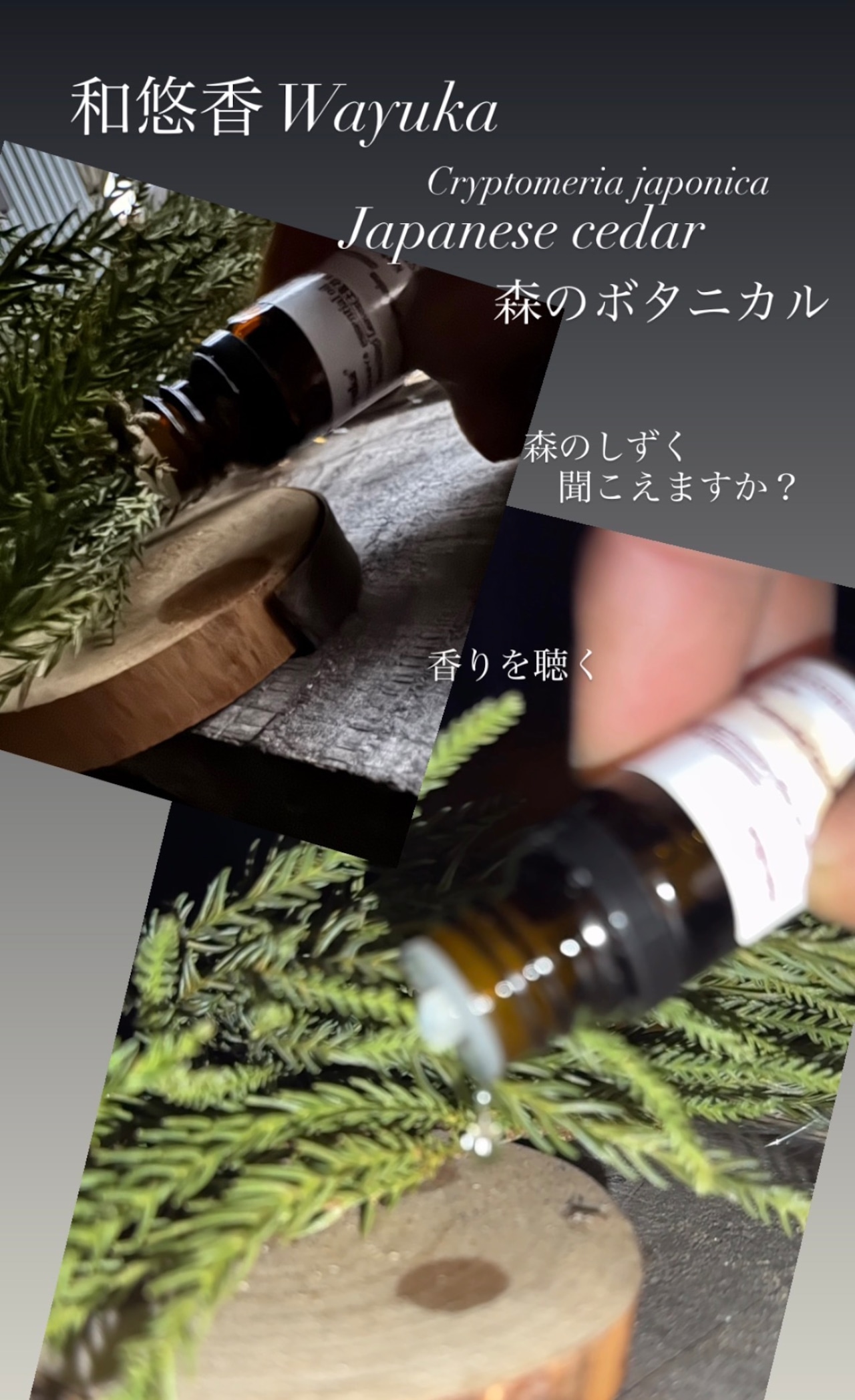 Japanese cedar/ヒノキ科/Cryptomeria japonica/抽出部位:枝葉/水蒸気蒸留法